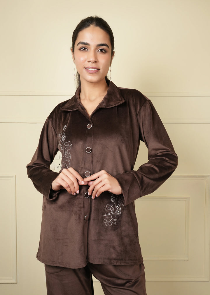 supersoft velvet strechable fabric sarwoski embrodirey pattern