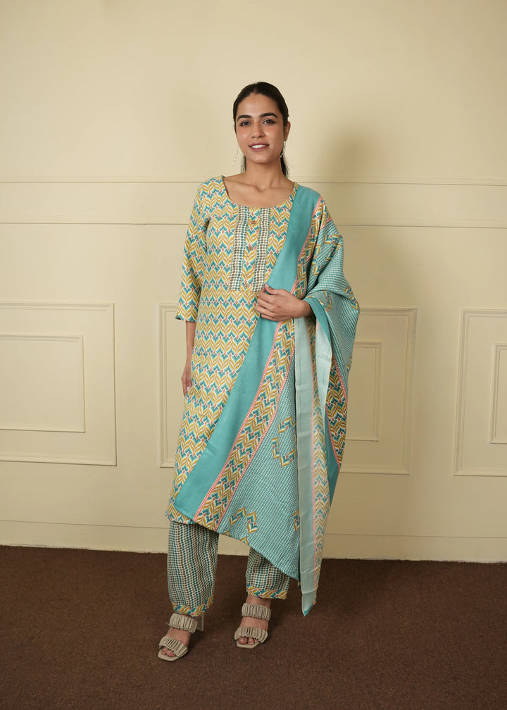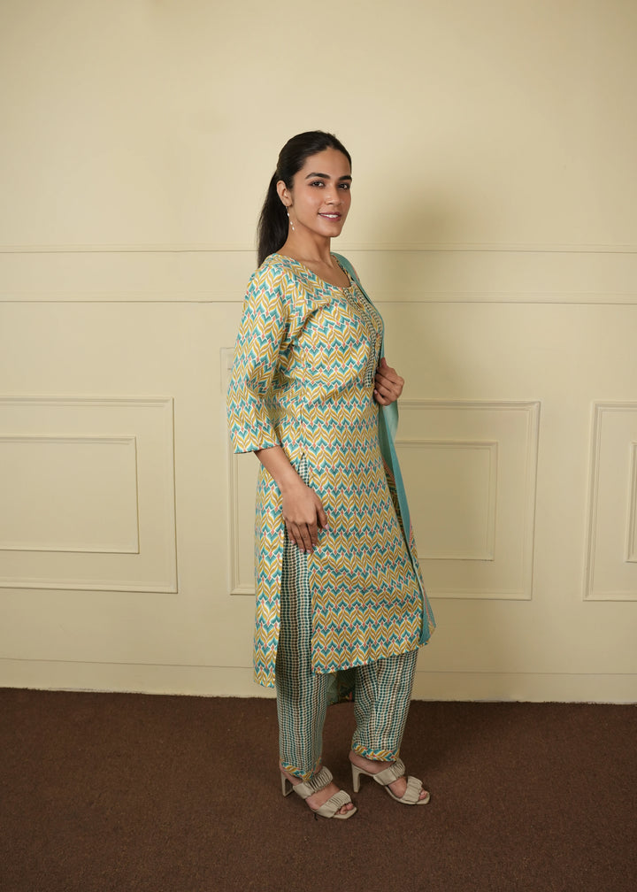Package contains: set of 3( 1 kurti,1 bottom,1dupatta)