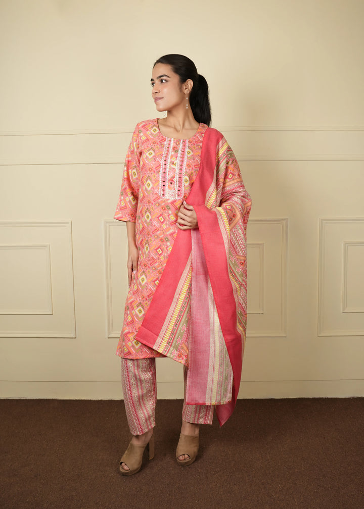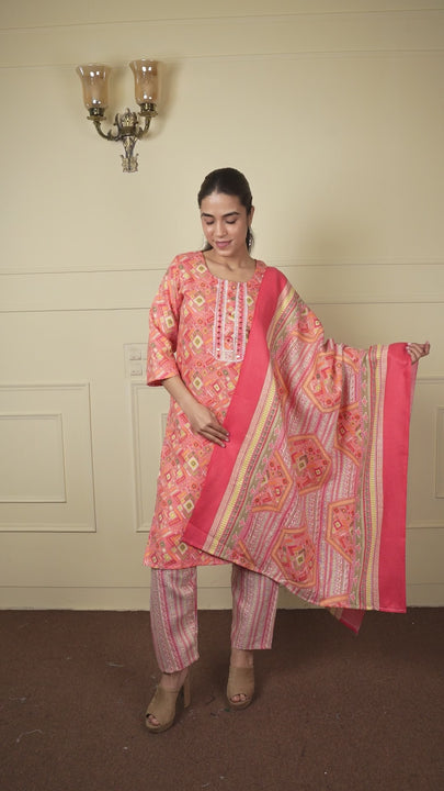 Package contains: set of 3( 1 kurti,1 bottom,1dupatta)