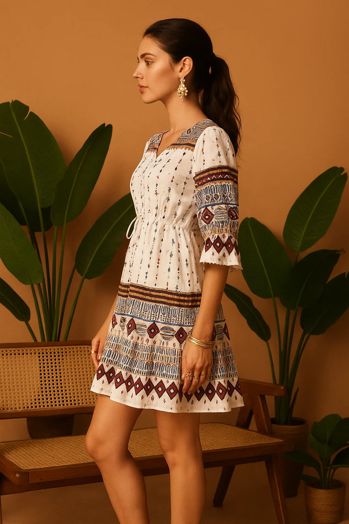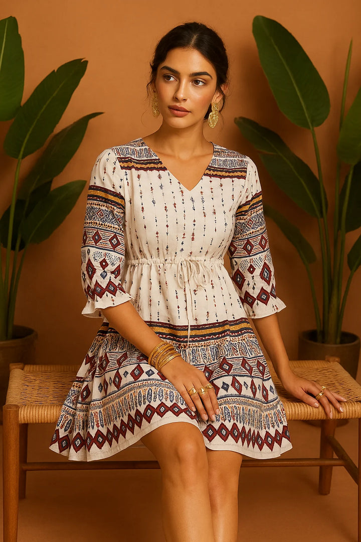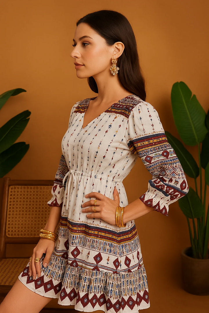 - Colour: Cream with maroon embroidery accents