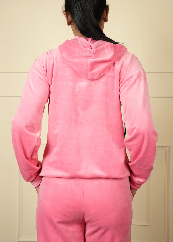 velvet supersoft strechable fabric with hoodie and zi